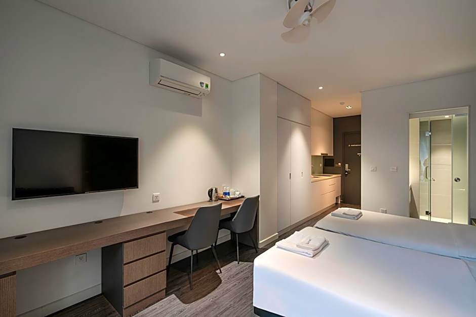This suite features a fireplace. Boasting a private entrance, this air-conditioned suite features a kitchen, 1 bedroom and 1 bathroom with a bath and a shower. In the kitchen, guests will find a refrigerator, kitchenware, a microwave and an electric kettle. The suite features a washing machine, soundproof walls, a mini-bar, a flat-screen TV with streaming services, as well as city views. The unit has 1 bed.